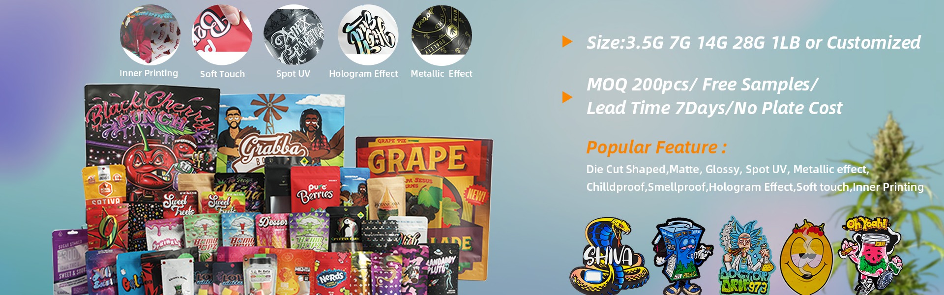 Products include food packaging bags, coffee/tea bags, electronic shielding bags, high-temperature sterilization bags, CBD packaging, display/gift/aircraft boxes, blister cards, and stickers.